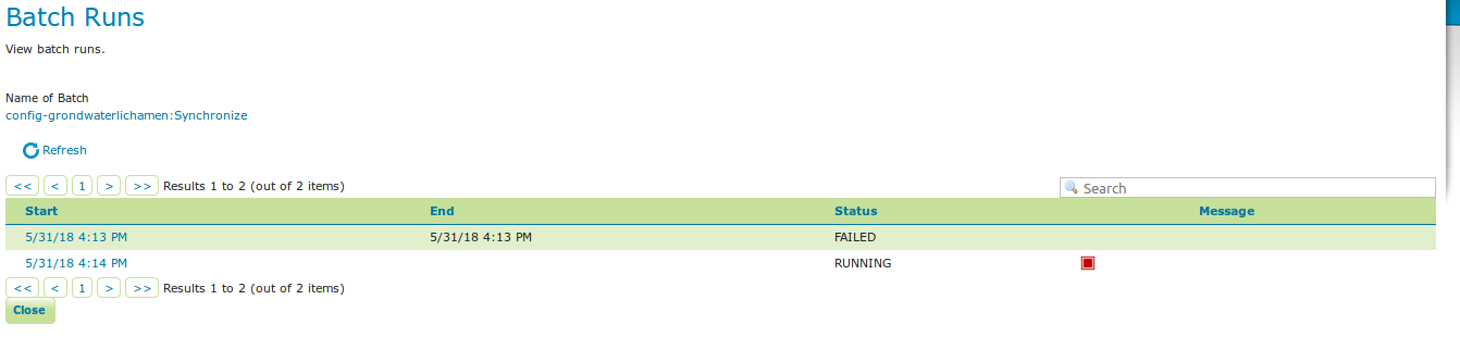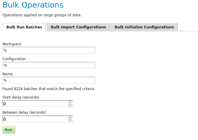 In case that the conditions are met, batch runs can be started, and the status/history of current and past batch runs can be displayed. Current batch runs can be interrupted (which is not guaranteed to happen immediately).
