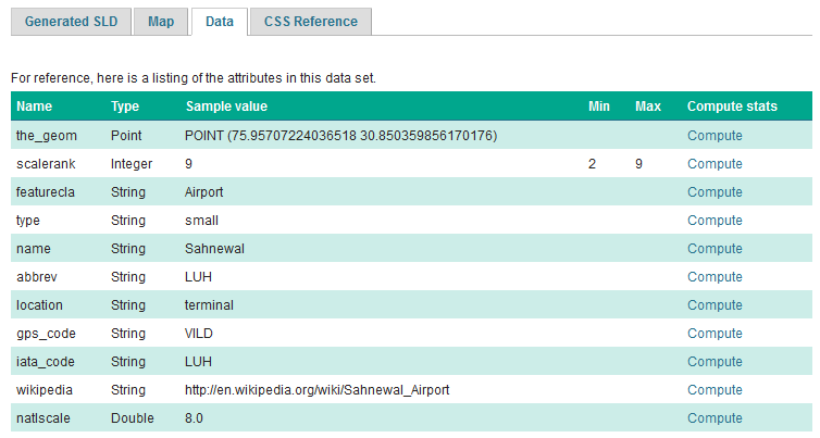 - Return to the Data tab and use the Compute link to determine the minimum and maximum for the scalerank attribute.