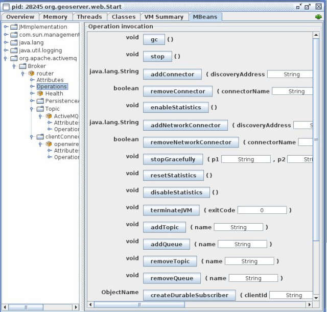 Using that console we are able to perform many operation, so to simulate a broker down we try to click on the 'stop()' button.
