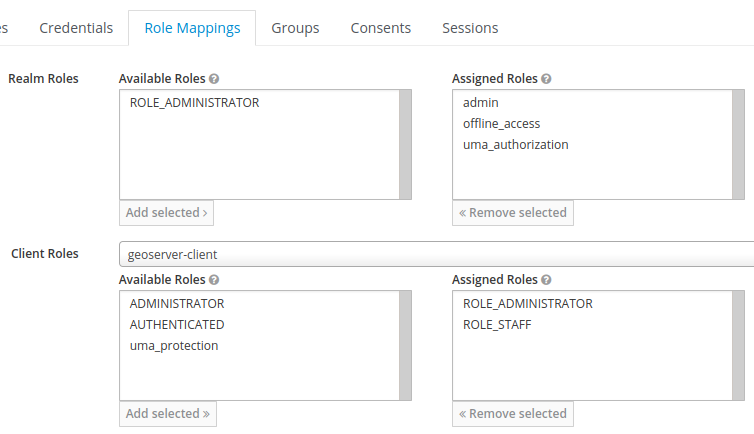 - In the role mappings tab, select the GeoStore client from the client roles dropdown.