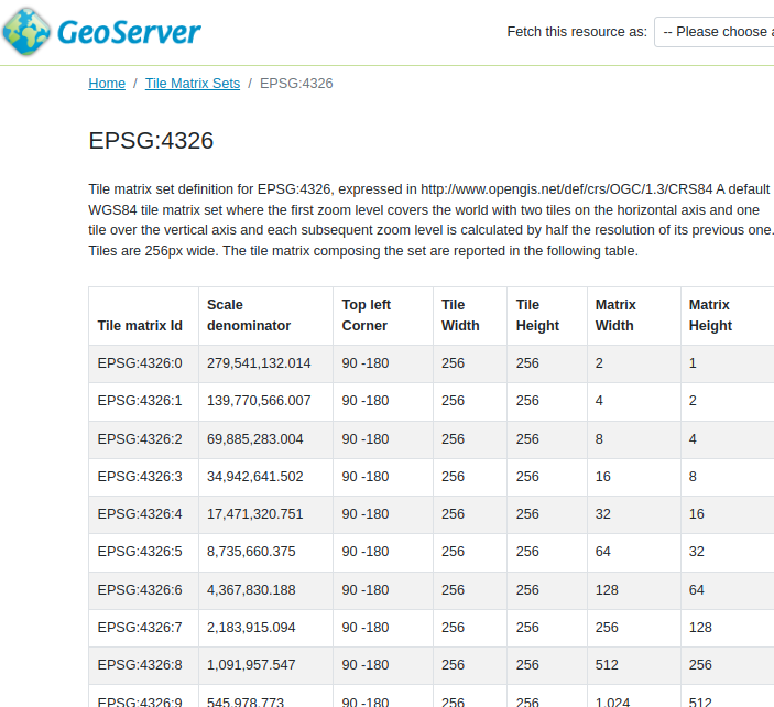 Tile matrix EPSG:4326 definition