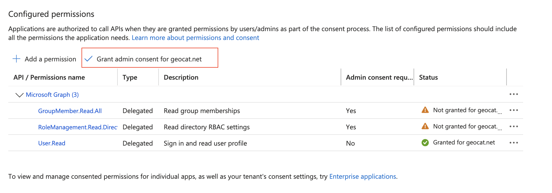 On the "Api permissions" screen, press "Grant admin consent for ..."