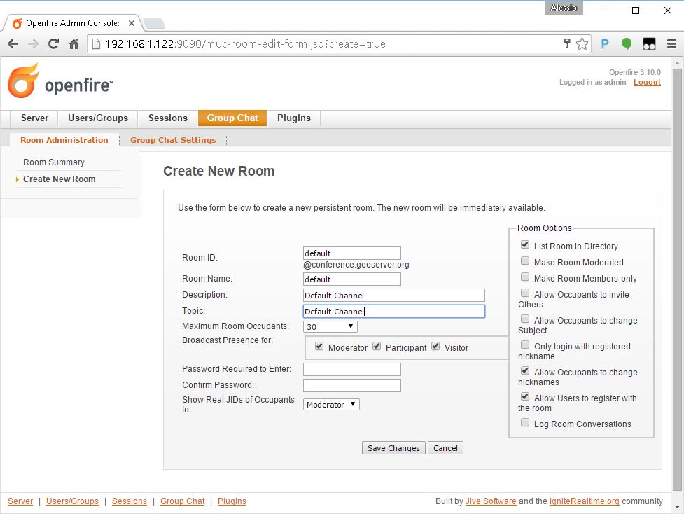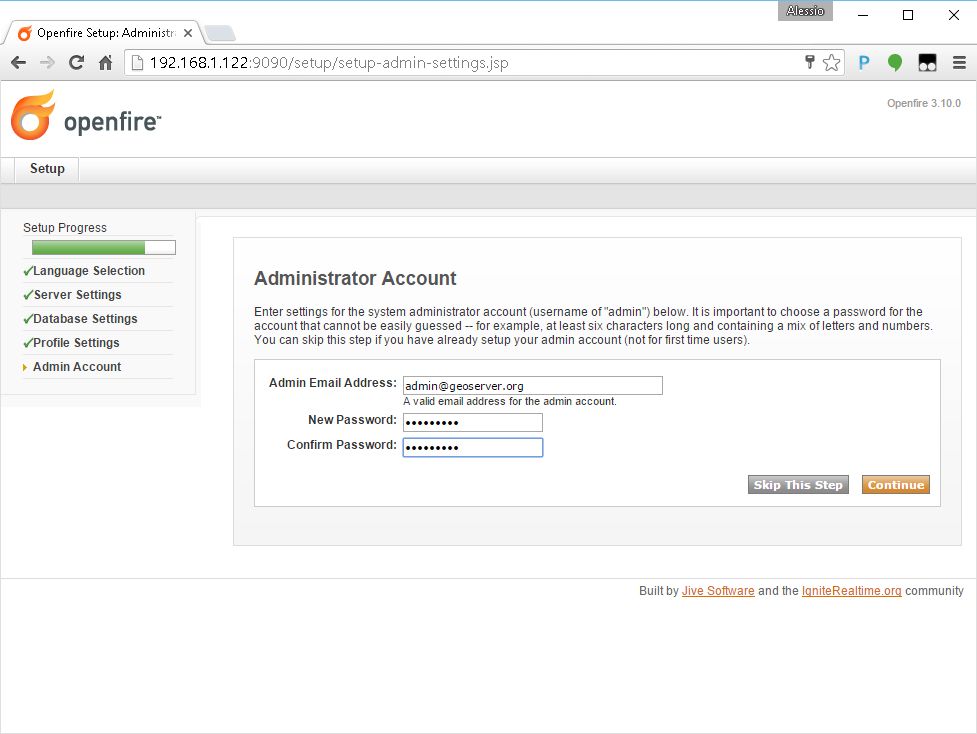 Setup and configuration of Openfire XMPP Server¶