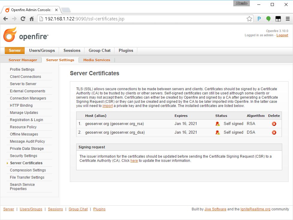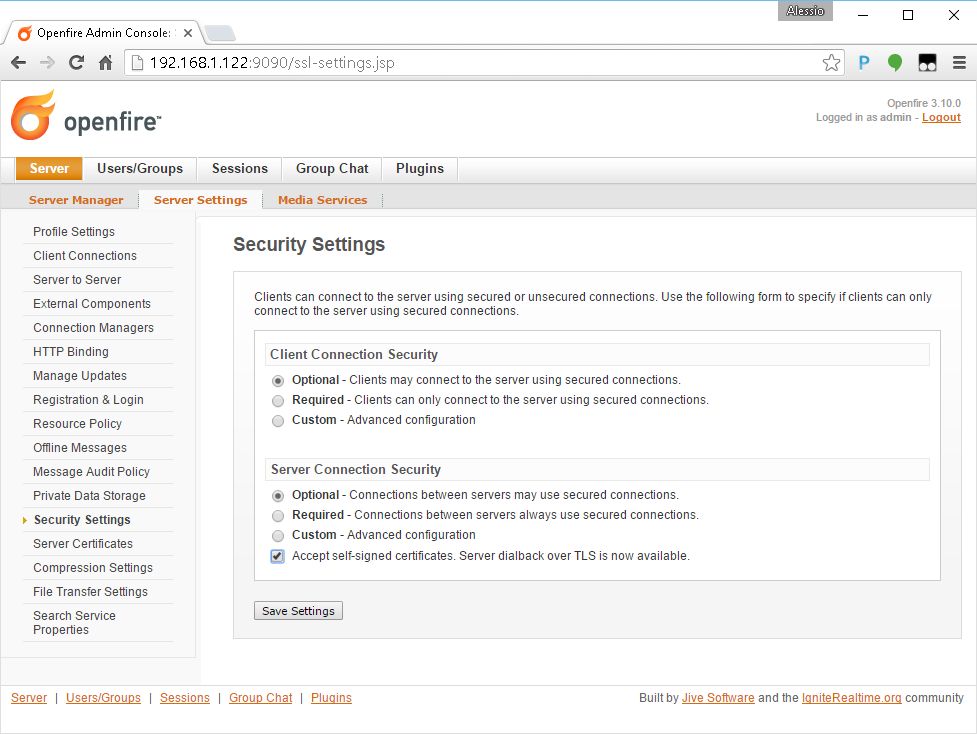 Configuration of Openfire server
