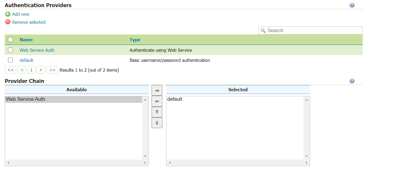 Once the settings are saved the new AuthenticationProvider is added to the list and needs to be added into the list of the providers' chain