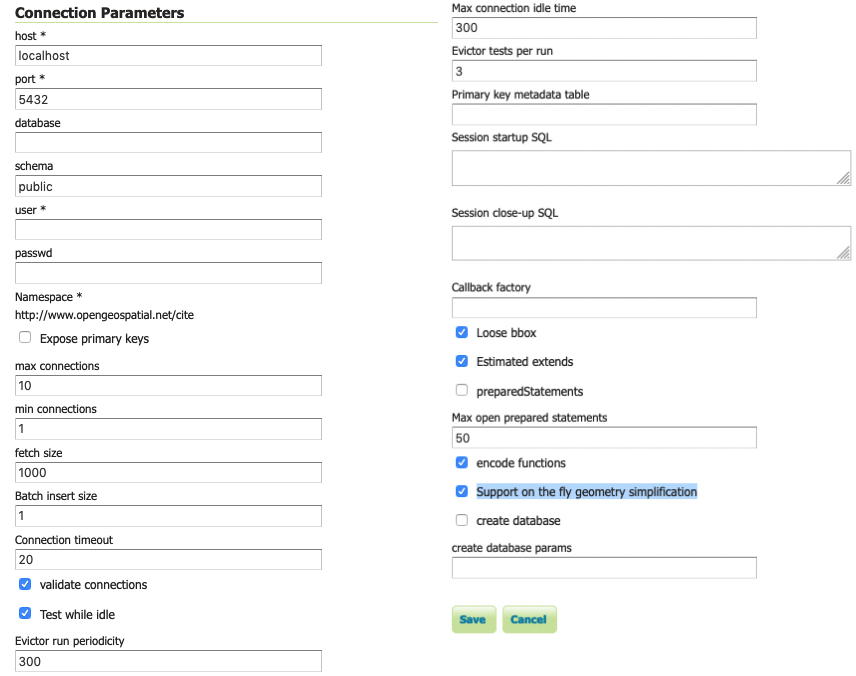 | Support on the fly geometry simplification | Enables use of PostGIS geometry simplification |