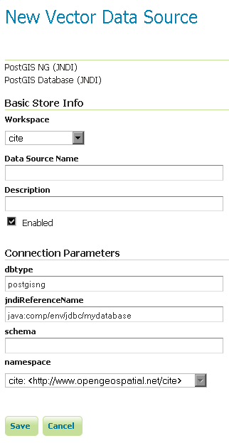 GeoServer can also connect to a PostGIS database using JNDI (Java Naming and Directory Interface). This is used to allow a PostGIS DataStore to share a named connection pool of PostGIS connections configured in your application server.