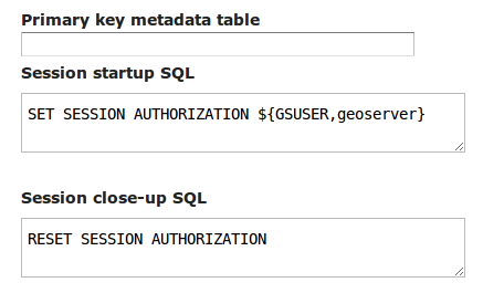 In addition to the parameters provided via the request the GSUSER variable is guaranteed to contain the current GeoServer user, or be null if no authentication is available. This is useful if the SQL sessions scripts are used to provide tight control over database access