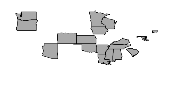 To display all states having more than 20 million inhabitants the following parameter is added to the GetMap request: &viewparams=low:20000000