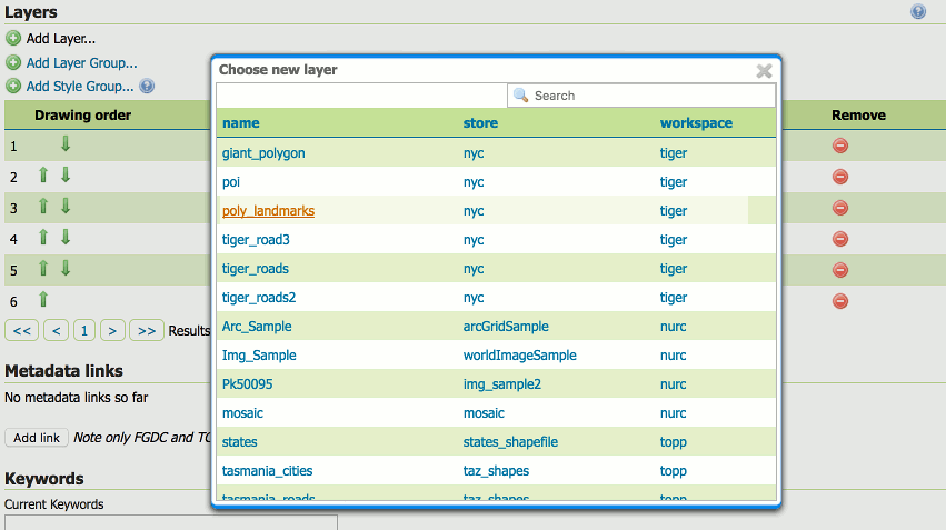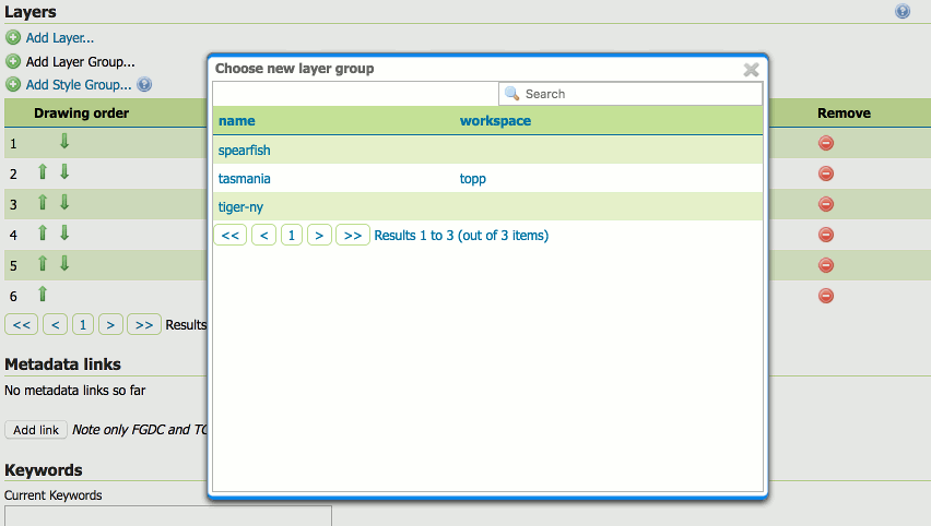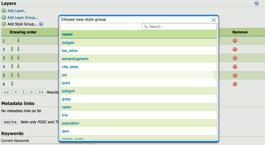 Layer groups keywords editor