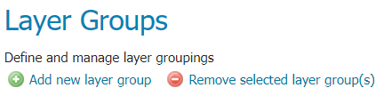 The buttons for adding and removing a layer group can be found at the top of the Layer Groups page.