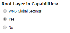 By default this behaviour is inherited from the global WMS service settings (WMS Global Settings option). Finally, it is possible to override the service settings and force a Yes to always include the GeoServer root element.