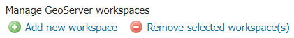The buttons for adding and removing a workspace can be found at the top of the Workspaces view page.