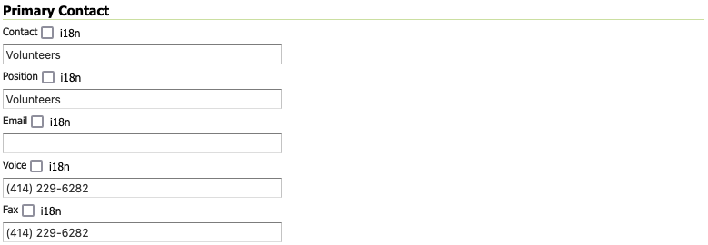 Organization contact information:
