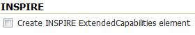 When the INSPIRE extension has been properly installed, the WMS settings, WFS settings and WCS settings sections of the Web administration interface will show an extra INSPIRE configuration section. If the data directory has not been configured with INSPIRE parameters before, this section will just contain a check box to enable the creation of an INSPIRE ExtendedCapabilities element.