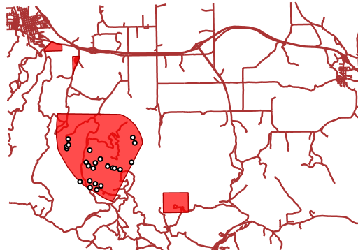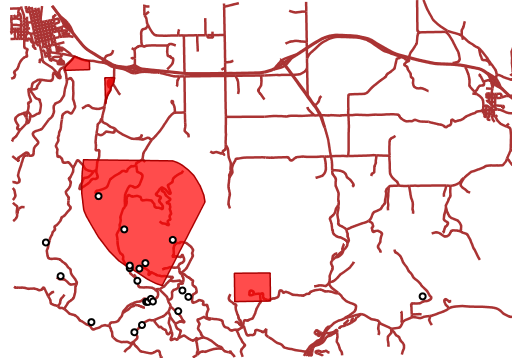 - Display all bug sites within 200 meters of any road: