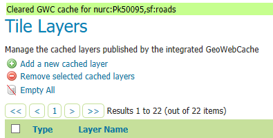 A confirmation will appear on the page as message with names of cleared Tile layers.