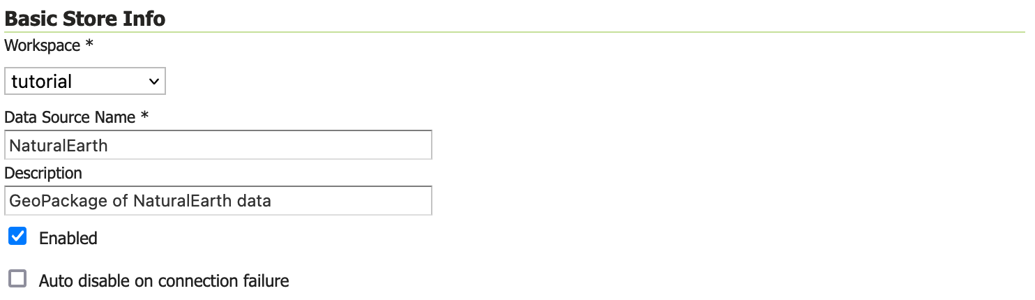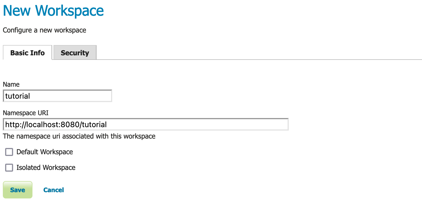 | Namespace URI | http://localhost:8080/geoserver/tutorial |