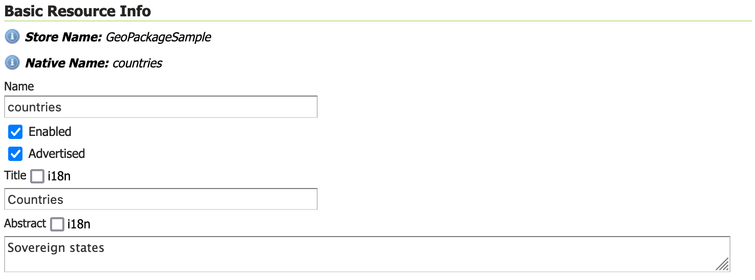 - Basic Resource Info - describes how the layer is presented to others