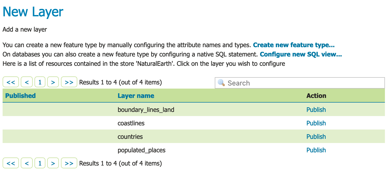 - You will be redirected to the New Layer page (as this is the most common next step when adding a new data store).