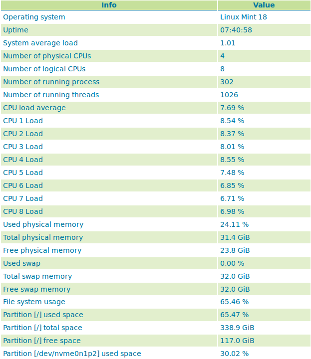 The XML and JSON representations are quite similar. For each system information metric, the following attributes will be available: