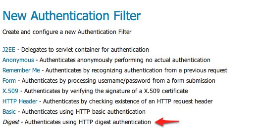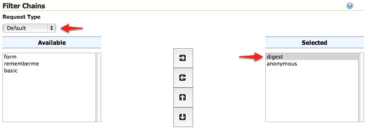 basicfilter and select thedigestfilter. Position the thedigestfilter before theanonymousfilter.