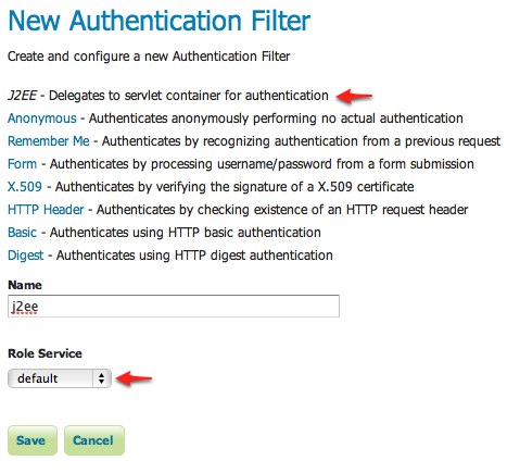 Since it is not possible to ask a J2EE container for the roles of a principal it is necessary to have all J2EE roles enlisted in a role service. The only J2EE API GeoServer can use is: