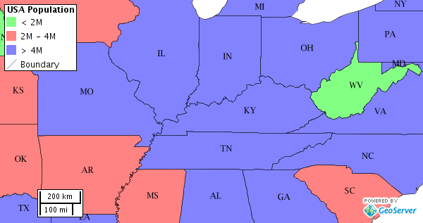 Used against the states layer from the default GeoServer data, this layout produces an image like the following.