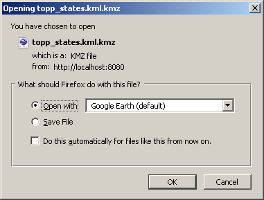 When Google Earth finishes loading you should be viewing a the topp:states layers.