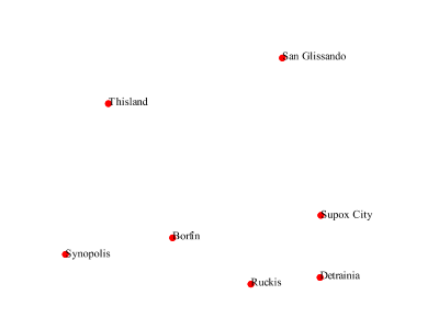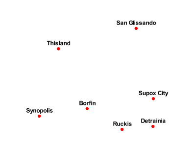 The points layer used for the examples below contains name and population information for the major cities of a fictional country. For reference, the attribute table for the points in this layer is included below.