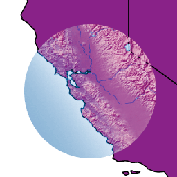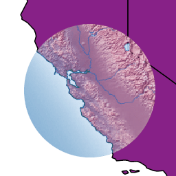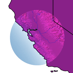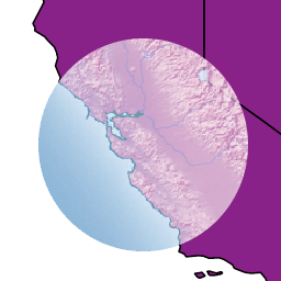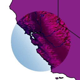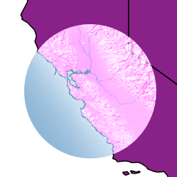 The source is visible only when overlapping some non-transparent pixel of the destination. This allows the background map to act as a mask for the layer/feature being drawn. Opposite of destination-in.