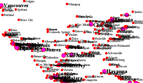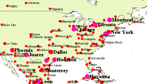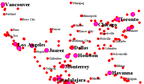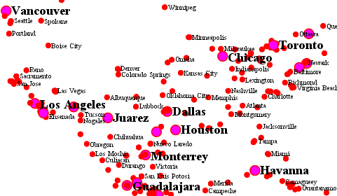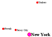 This ensures that at small scales New York is labeled in preference to the less populous cities nearby: