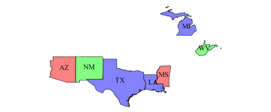 STATE_NAME IN ('New York', 'California', 'Montana', 'Texas')